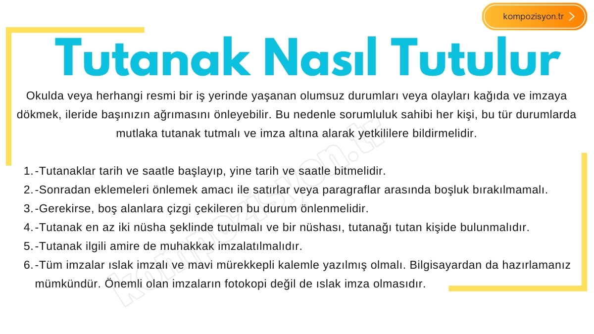 - Tutanak en az iki nüsha olarak hazırlanmalı ve bir nüshası tutanağı hazırlayan kişi tarafından saklanmalıdır.